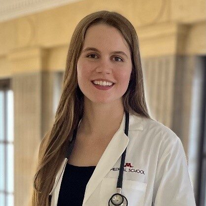 Jordyn Nepper is a current M2 a the Medical College of Wisconsin. She is from Superior, Wisconsin, where she attended University of Wisconsin-Superior studying biology. She was first introduced to sarcoma during her undergraduate studies, when she completed a summer research fellowship studying pediatric rhabdomyosarcoma using a zebrafish model. Since, her interest in oncology has grown after hearing the lived experiences of patients and their families. She hopes to contribute to research and improved outcomes for patients diagnosed with sarcoma cancers. In her free time, she enjoys camping, road trips, crafts and listening to her favorite artist Zach Bryan.