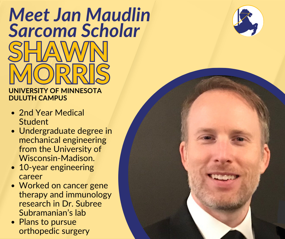 William completed his undergraduate degree in mechanical engineering from the University of Wisconsin-Madison. He discovered medicine later in life, while working as an engineer in orthopedics. During his 10-year engineering career, his interest in cancer was inspired while working on medical devices and implants for cancer patients. His interest in cancer research grew during his graduate studies at the University of Minnesota where he worked on cancer gene therapy and immunology research in Dr. Subree Subramanian’s lab. William is now a 2nd year medical student at the University of Minnesota Medical School, and plans to pursue orthopedic surgery. His career as an engineer taught him the importance of innovation, and merging of engineering and medicine to advance medical treatments. As a Jan Mauldin Sarcoma Scholar, William is excited to expand education, awareness, and treatment of sarcoma cancer.