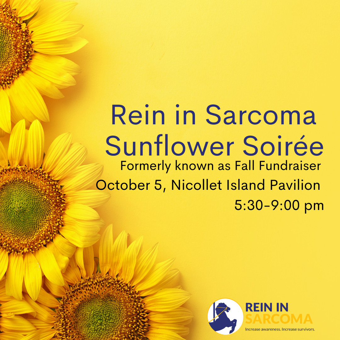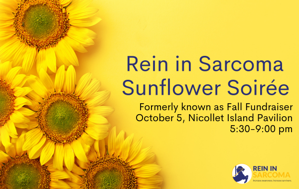 We are in need of volunteers for our Fall Fundraiser: Sunflower Soiree on Thursday, October 5, 2023 at Nicollet Island Pavilion in Minneapolis. Volunteer roles include: set-up, registration, silent auction, live auction, and more. Shifts available throughout the day (between 1:00-10:00 pm). Please email admin@reininsarcoma.org if interested.