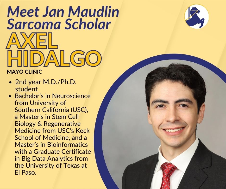 It’s time to meet the Jan Maudlin Sarcoma Scholars from Mayo Clinic.   Axel M. Hidalgo is a rising second-year M.D./Ph.D. student at Mayo Clinic, originally from Ciudad Juárez, México. He holds a Bachelor’s in Neuroscience from the University of Southern California (USC), a Master’s in Stem Cell Biology and Regenerative Medicine from USC’s Keck School…